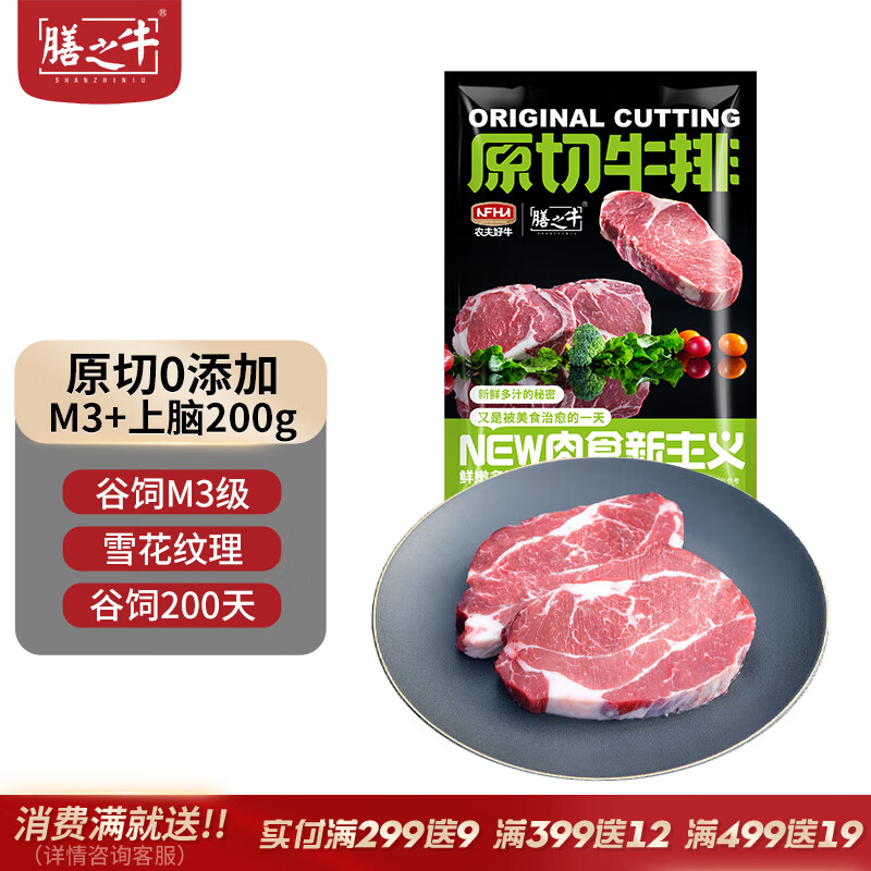 膳之牛x农夫好牛阿根廷安格斯M3+原切上脑牛排 200g谷饲牛肉源头直发