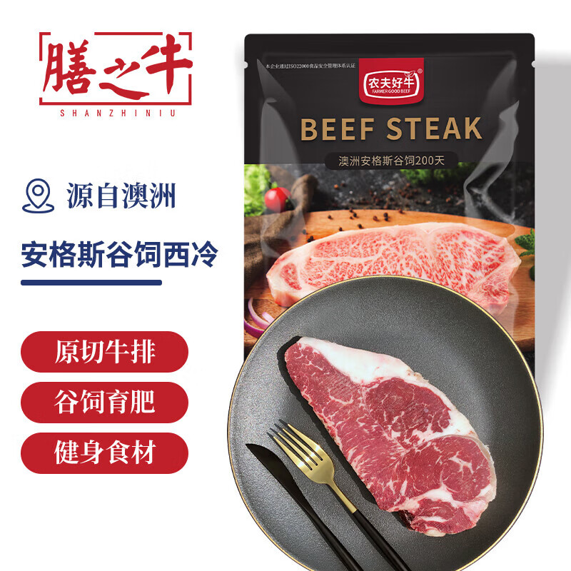 膳之牛澳洲安格斯谷饲原切西冷牛排厚切300g M3生鲜牛肉源头直发