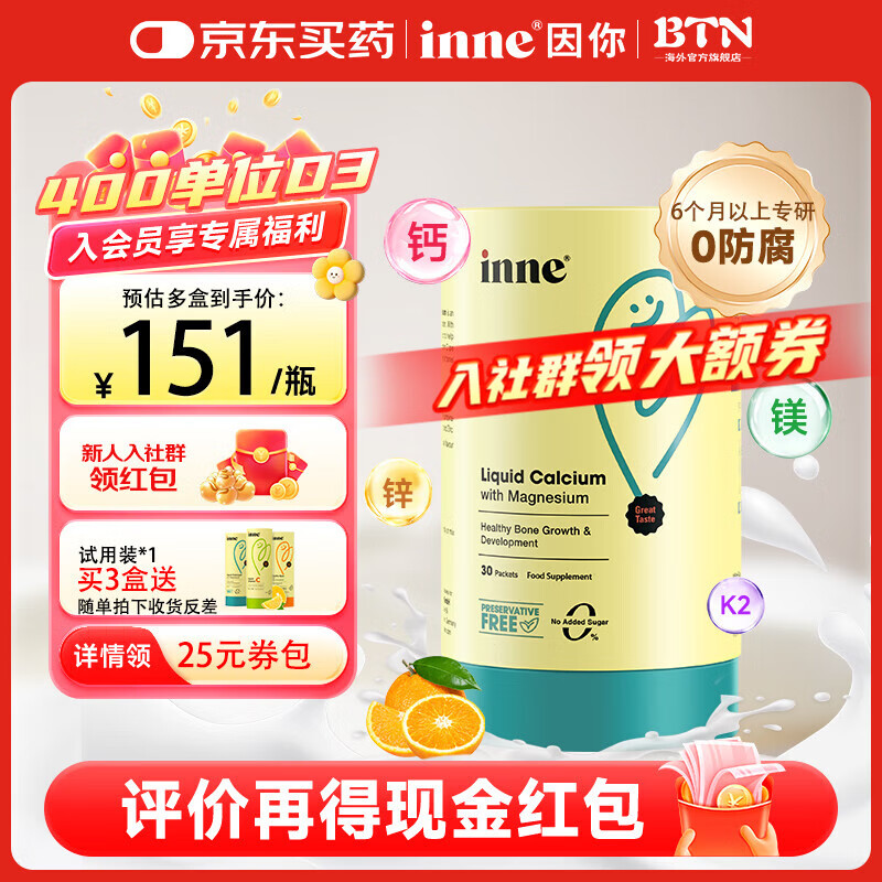 Inne因你竹节钙赖氨酸生长素 青少年补钙儿童生长小金条钙镁锌液体钙 (6月+ 香橙味)小金条钙镁锌*1罐